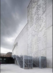 Le théâtre puise sa matière et son langage dans son environnement immédiat. Il empreinte sa masse minérale monolithique au bunker géant et sa forme épannelée est issue des architectures industrielles voisines.